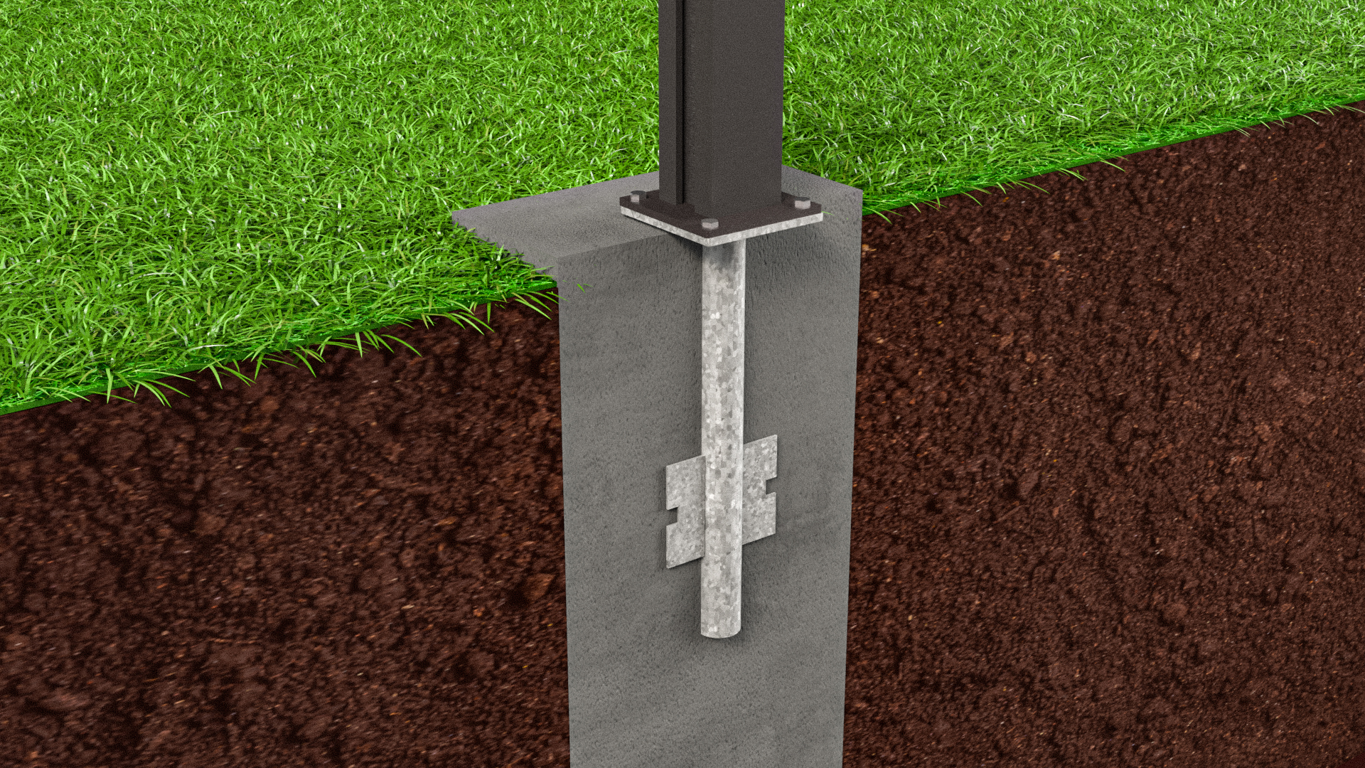 Mit diesem Erdanker kann der Zaunpfosten optimal befestigt werden.
