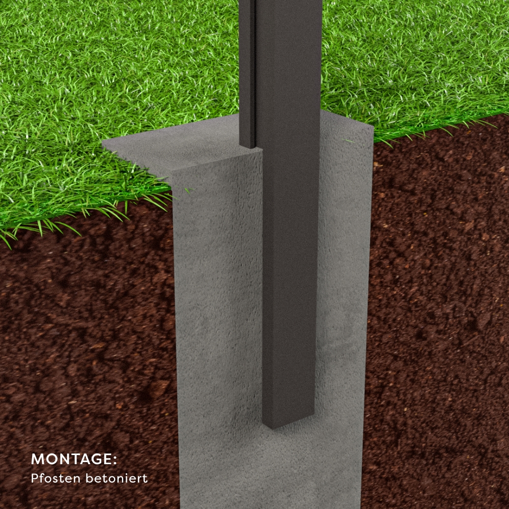 - 3 x Hochwertige Aluminium-Pfosten inkl. Pfostenträger und Abdeckkapppe
